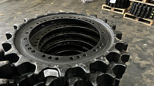 Звездочка K1000682 DX225LCA Black Rock. Деталь, которая осуществляет вращение гусеничной цепи. Звездочка своими зубьями зацепляется за втулки звеньев и таким образом перематывает гусеничную цепь, приводя в движение машину. При сильных нагрузках зубья звездочек истираются и ломаются. Купить звездочку и другие запчасти для спецтехники по выгодной цене с доставкой по России можно на сайте TECHNOPARTS.PRO.